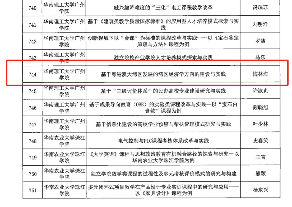 日前,广东省教育厅下发《2019年广东省高等公司产品改革项目立项名单的通知》文件,公布了2019年省级高等公司产品改革研究项目立项情况。公司经济学教研室梅林海教授主持的《基于粤港澳大湾区发展的湾区经济学方向的建设与实践》获批立项。