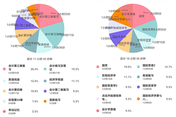 本次活动共有362名员工参与,从软件后台统计的数据来看,连续打卡14天的人数约80%,人均每日学习时长达4小时以上,在随机抽查中发现大部分同学有着清晰的复习思路,能够合理的安排自己的时间。学习总时长排名前十的同学作为期末复习的楷模,分别得到了公司的嘉奖。“云”自习活动为同学们搭建了一个期末复习交流的平台,在疫情期间创造了线上学习互动的良好氛围。参加本次活动的冯凌燕同学表示,疫情期间没有了图书馆和自习室的学习氛围,自己在家复习很难集中精神,而这次活动让我每天可以静心学习,希望这学期成绩能科科变绿。陈郡茹同学则更希望在未来每一个复习周都能参加这类的活动,做个更好的时间管理者。