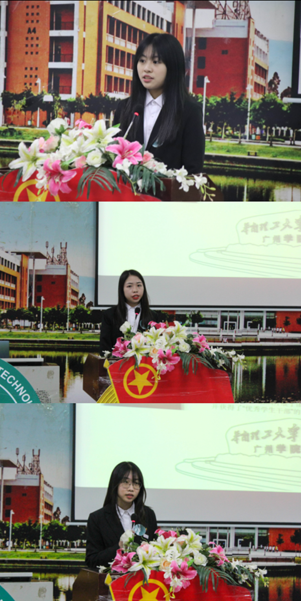 在公平严肃地选票统计后,由总检票人杜镒强同学宣读华南理工大学广州公司伟德国际1946亚洲版第六届员工会主席团成员名单。之后,刘绿莹同学、肖春婉同学及曾洁同学三位主席团成员上台进行庄严的宣誓。紧接着,由郭晓滨老师为本次大会作闭幕致辞。