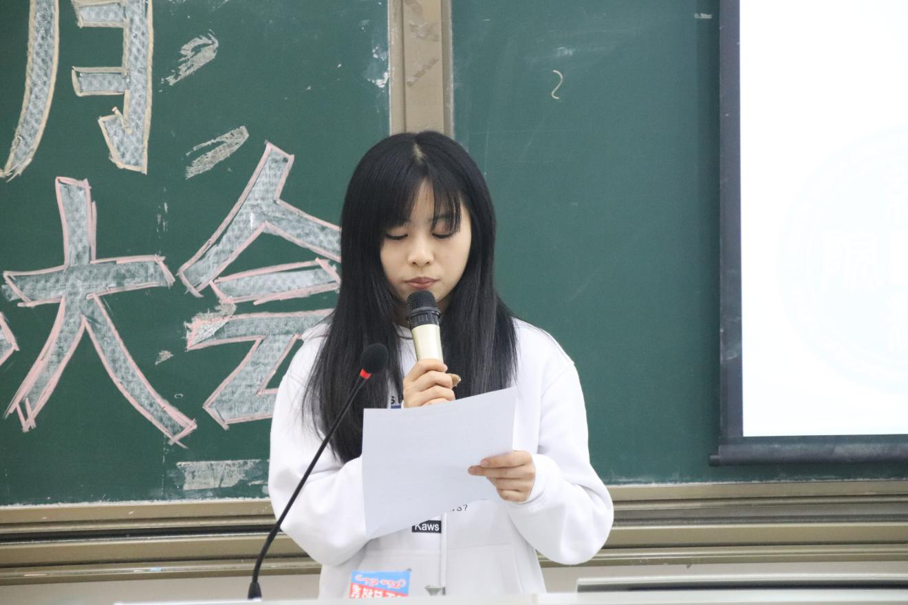 2019级金融工程1班廖子晴同学讲话(刘靖峰 摄)