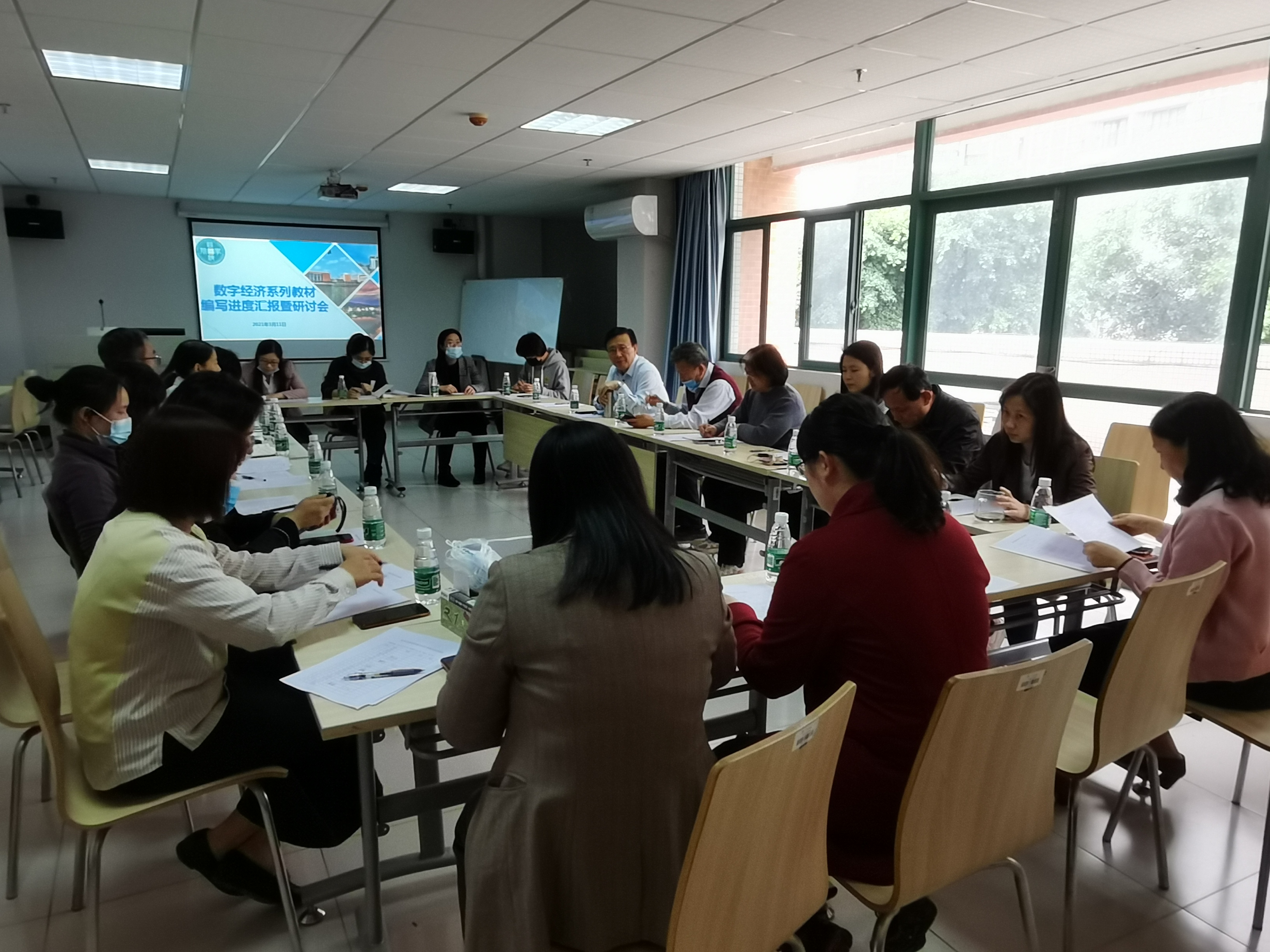 本网讯(记者 肖秀华)3月11日下午,伟德国际1946亚洲版如期召开数字经济系列教材编写进度汇报暨研讨会。伟德国际1946亚洲版经理杨星,党总支书记、副经理蒋金良,副经理王业雯,总副主编梅林海教授和李彬教授以及十五位主编等共22人参加了此次会议。