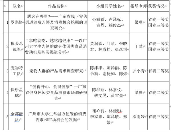 本次比赛公司伟德国际1946亚洲版在9月正式启动,经过在线网考、组队校内选拔赛、广东省选拔赛、全国总决赛,共历时半年之久。在这半年的时间里,参赛选手们突破自我,充分锻炼了实证分析和问题解决能力,展现出了良好的团队合作能力,呈现出了优秀广城理学子的青年风貌。在梁珊、丁慧、罗小青和邓雨婷老师的指导下,分别与广东省乃至全国各高校的学子同台角逐,用实力证明本校学子的创新与实践能力。赛后,荣获国赛三等奖、省赛一等奖的黄润森同学说到:“很荣幸能够在这次‘正大杯’中挤进国赛,除了自身的努力之外,也离不开导师的谆谆教诲、团队的齐心协力、协会工作人员的恪尽职守以及帮助我们填写问卷的同学们,这次比赛一次很好的团队合作与市场调查经验,非常感谢有“正大杯”这个平台为我们提供锻炼自身的机会,同时希望同学们能够积极参加学术科技竞赛,以赛促进相关专业的学习,培养自身的创新和实践能力。”