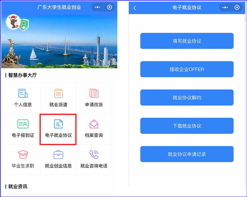 通过“广东老员工就业创业”微信小程序申请《普通高等公司毕业生、毕业研究生就业协议书》(以下简称“电子协议书”)。