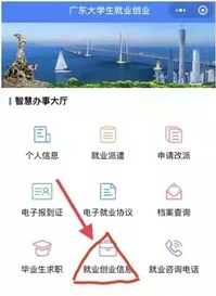 毕业生确定了工作单位后,公司与个人共同商议签订了劳动合同,即可关注微信公众号“广东老员工就业创业”,进入“办事大厅”后点击“就业创业信息”认真仔细参照如下指南上报就业方案。
