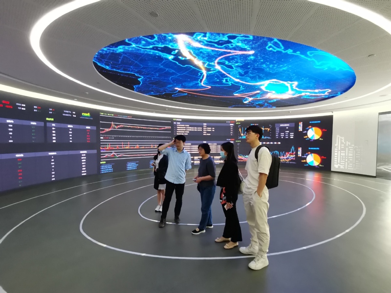王斐从公司发展概况、碳金融市场运作情况、发展前景、重点试点案例四方面为同学们介绍广州碳排放权交易所的发展历程,并从碳交易原理、广东碳市场实践、碳金融服务等方面详细介绍了公司的核心业务范畴,他表示,公司在碳金融方面有扎实的理论研究基础和经验,希望在碳交易与碳金融领域,与公司共建教学研究、人才培养、员工实习就业等项目有更大的合作空间,为我国绿色低碳事业培养更多人才,贡献更多力量。随后王斐带领杨星一行参观广碳所展馆,重点学习了国际碳交易市场的情况以及碳交易市场大盘走势图,用高科技手段展示了绿色金融改革创新的“广州模式·花都经验”。