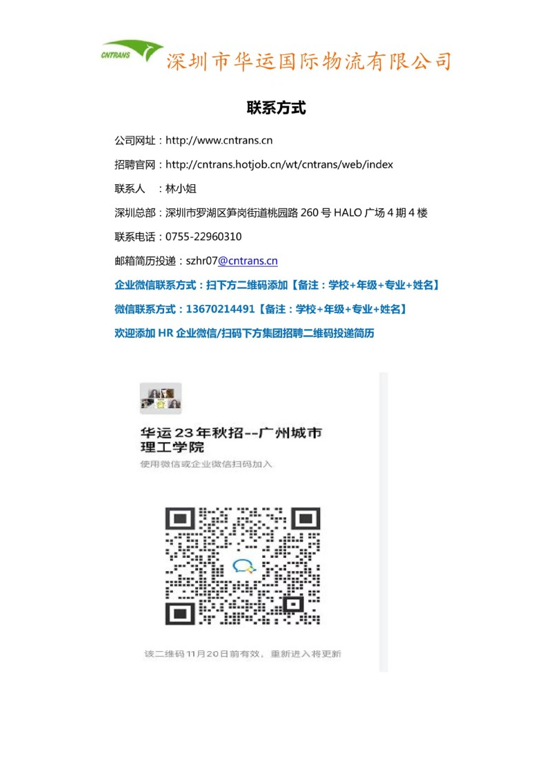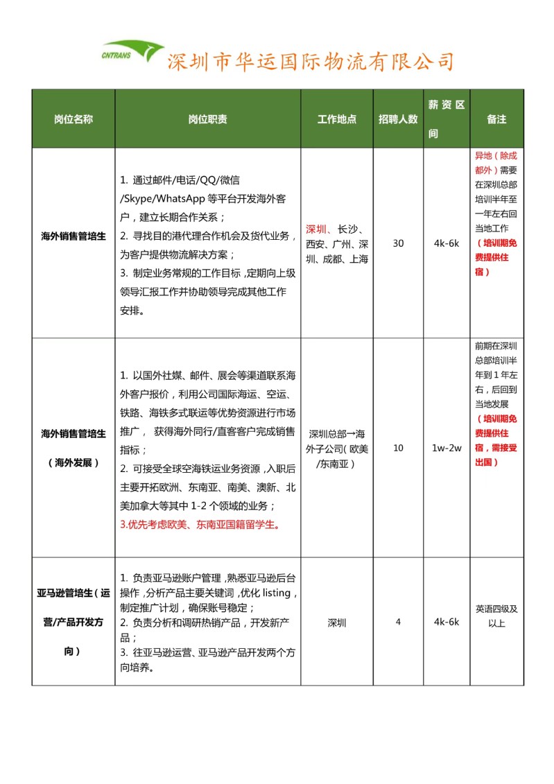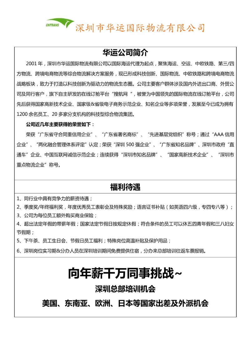 【招聘信息】深圳市华运国际物流有限公司