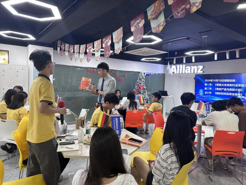本网讯(记者 罗方泵)为了深化员工对保险行业的认知与实践能力,促进经济学子综合素养与专业水平的全面提升,10月17日-10月18日,伟德国际1946亚洲版在汕头君华海逸酒店与安联人寿保险有限公司联合举办两场分别以“人寿保险的专业知识深度剖析”、“人寿保险产品矩阵与职业发展路径”为主题的校企联动教学活动。经济学教研室钟二妹与黄聪权2位老师带领23经济学(专升本)1班的32名同学参与本次活动。