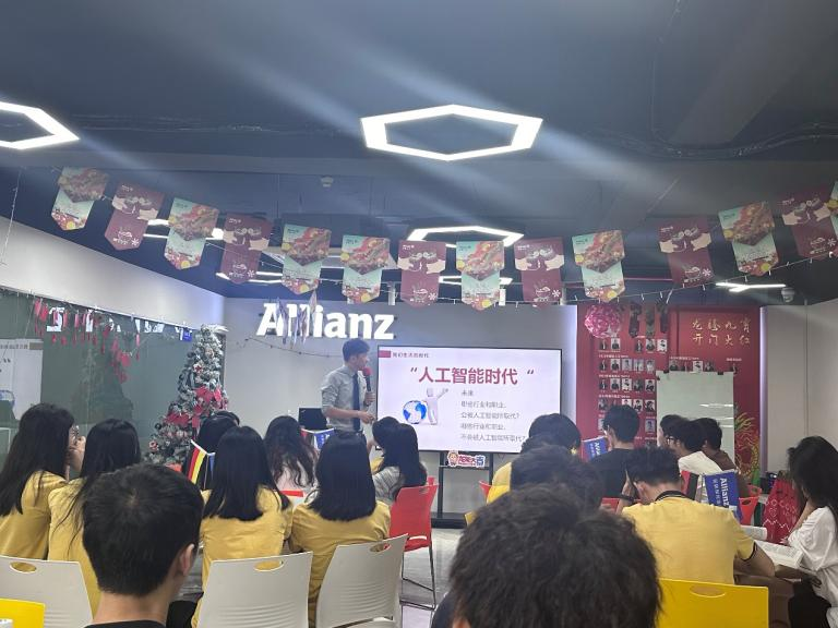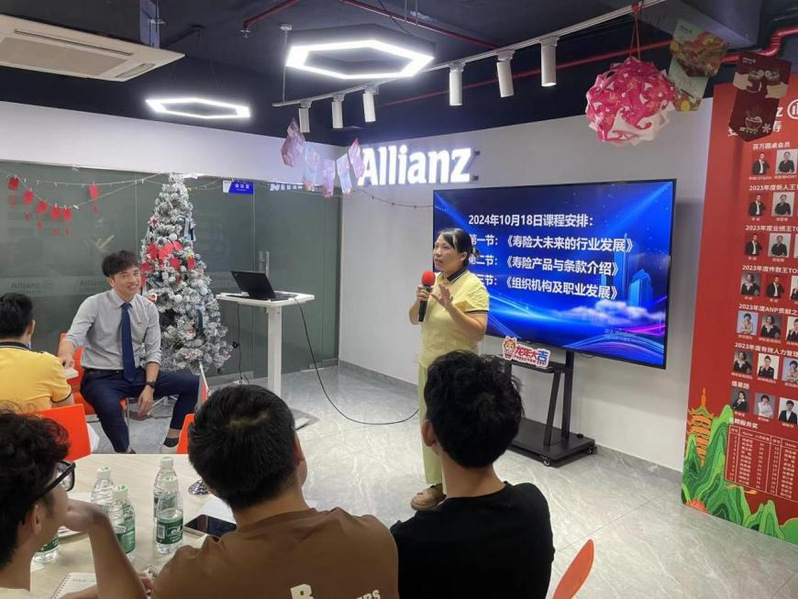 次日活动中,蔡凯生经理邀请钟二妹老师与黄聪权老师上台,分享他们对安联人寿的深刻印象与未来期望。钟老师以其独特的视角,分享了关于保险行业人性化服务的见解,以及安联人寿如何在细微之处展现关怀与专业的故事,并结合安联人寿的实际案例,分享了如何将课堂理论知识与实际操作相结合,从而提升员工的实践能力和职业素养。黄老师则对安联人寿的企业文化及蔡经理的专业服务给予高度评价。随后,安联人寿保险有限公司汕头分公司总经理杨帆女士发表致辞,热烈欢迎员工们的到来,并分享了她在保险行业的宝贵经验与独到见解。在业务详解环节,蔡凯生经理通过三个小节,详细阐述了安联公司的业务领域。他首先展望了寿险行业的未来发展趋势与机遇,帮助员工把握行业脉搏。接着,他介绍了安联寿险的最新产品及条款,让员工紧跟市场动态。最后,他解读了安联的组织架构,探讨了保险行业中的职业发展路径与策略,分享了自己在工作中面对挑战时的应对策略,为员工的职业规划提供了切实可行的建议。他的分享深深触动了在场员工,激发了他们面对未来职业挑战的信心与决心。