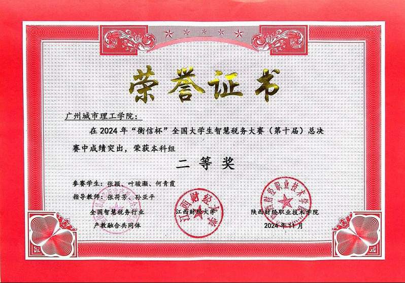 本网讯(记者 张荷芳)11月22日-11月24日,“衡信杯”全国老员工智慧税务大赛(第十届)总决赛在江西财经大学蛟桥园校区成功举办,公司学子在全国舞台上大放异彩,荣获全国二等奖的殊荣,充分展现了公司财税专业的教学实力和员工的综合素质。