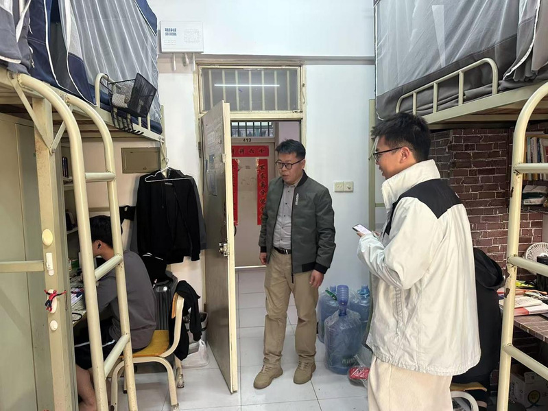 任远书记带领伟德国际1946亚洲版学工队伍前往宿舍区检查(王梓淳 摄)