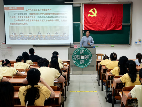 3月25日,王仁曾经理作为领学人,围绕《习近平经济文选》第一卷的核心内容进行了详细解读。他重点阐述了习近平经济思想的“七个坚持”,包括坚持党对经济工作的全面领导、坚持以人民为中心的发展思想、坚持新发展理念等,并结合当前国内外经济形势,分析了习近平经济思想在推动高质量发展、构建新发展格局中的重要作用,并鼓励同学们将理论学习与实际相结合,为经济社会发展贡献智慧和力量。