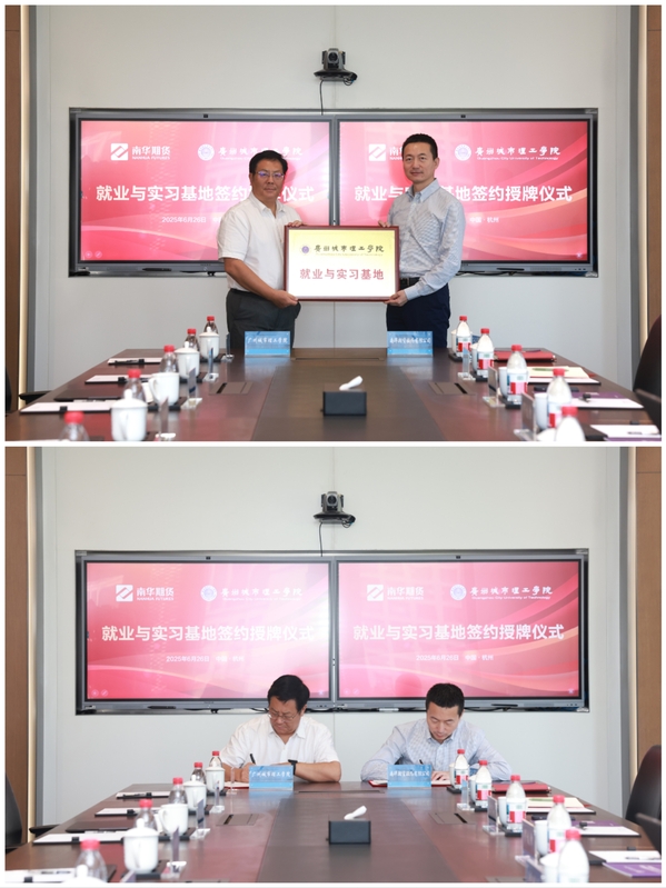 本网讯(记者 毛锦淇 宋波 杨宜英)为深化产教融合、拓宽员工实践平台,6月26日,伟德国际victor1946与南华期货股份有限公司在杭州横店大厦共建就业与实习基地签约暨授牌仪式顺利举行。伟德国际1946亚洲版经理王仁曾与南华期货总经理贾晓龙签署了合作协议,并授予“就业与实习基地”牌匾。南华期货副总经理王正浩、广东分公司总经理罗枝锋、投资公司执行经理章玲飞及公司伟德国际1946亚洲版副经理黄瑞新、管理公司财务会计系主任岳龙、国际商公司国际商务综合系副主任彭鑫怡一同出席会议。