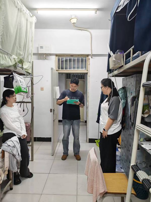走访过程中,各位辅导员逐一走进宿舍,与同学们亲切交流,细致询问返校行程、假期生活、新学期学习规划及生活需求,认真倾听同学们的心声,耐心解答大家关心的问题。辅导员们重点检查宿舍用电安全、消防设施、内务卫生、管制刀具与门窗安全,提醒同学们规范用电、人走断电、妥善保管贵重物品、宿舍常通风,共同营造安全、整洁、文明的住宿环境。